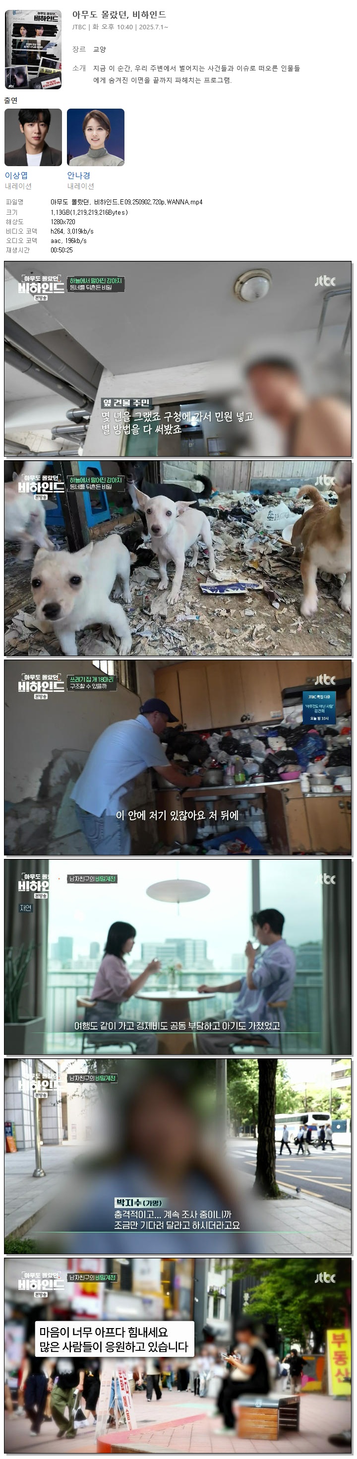 [JTBC] 아무도 몰랐던, 비하인드.E09.250902.720p.WANNA