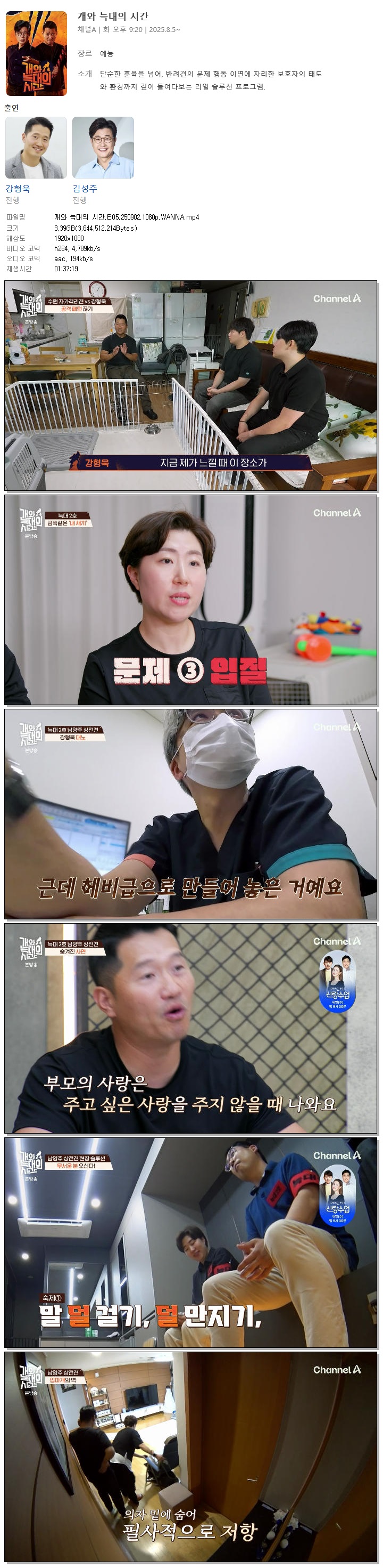 [채널A] 개와 늑대의 시간.E05.250902.1080p.WANNA[강형욱, 김성주].mp4
