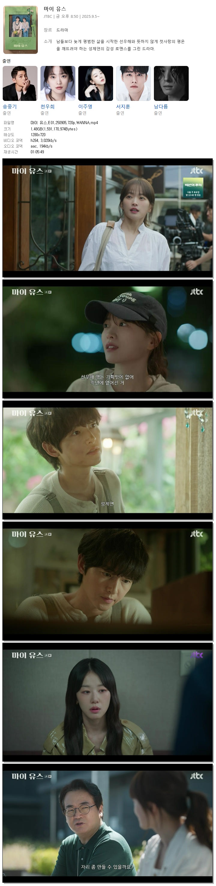 [JTBC] 마이 유스.E01.250905.720p.WANNA[송중기, 천우희].mp4