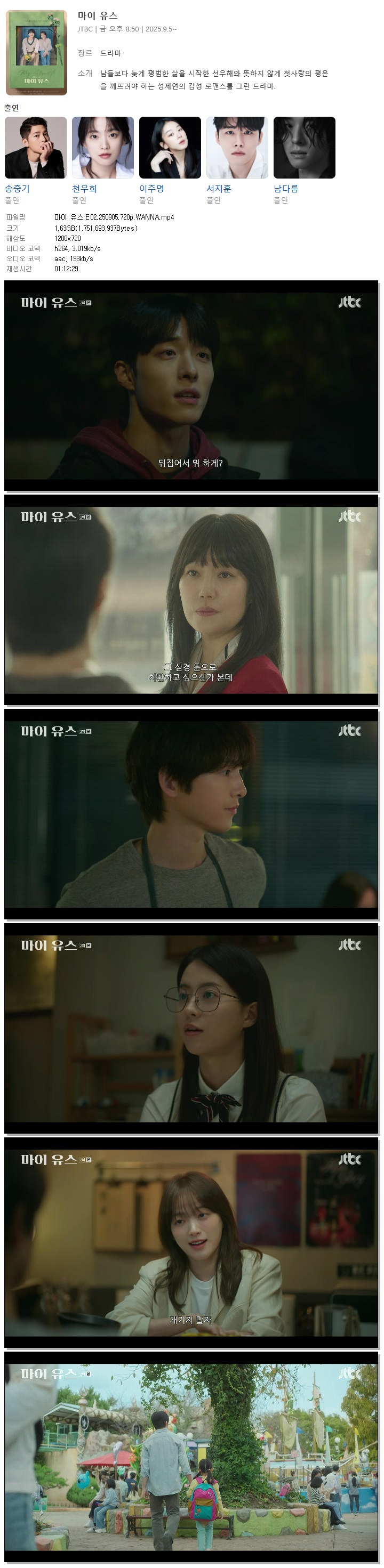 [JTBC] 마이 유스.E02.250905.720p.WANNA[송중기, 천우희].mp4