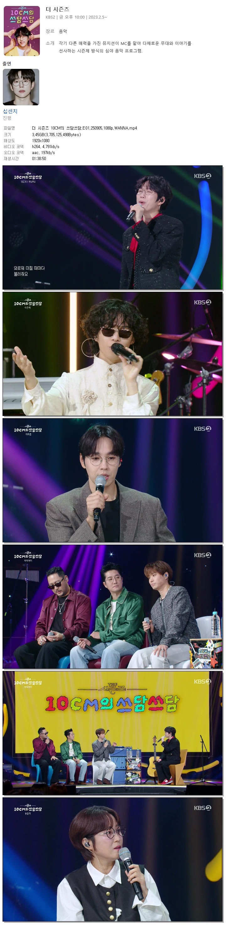 [KBS2] 더 시즌즈 10CM의 쓰담쓰담.E01.250905.1080p.WANNA[이찬혁, 에픽하이]