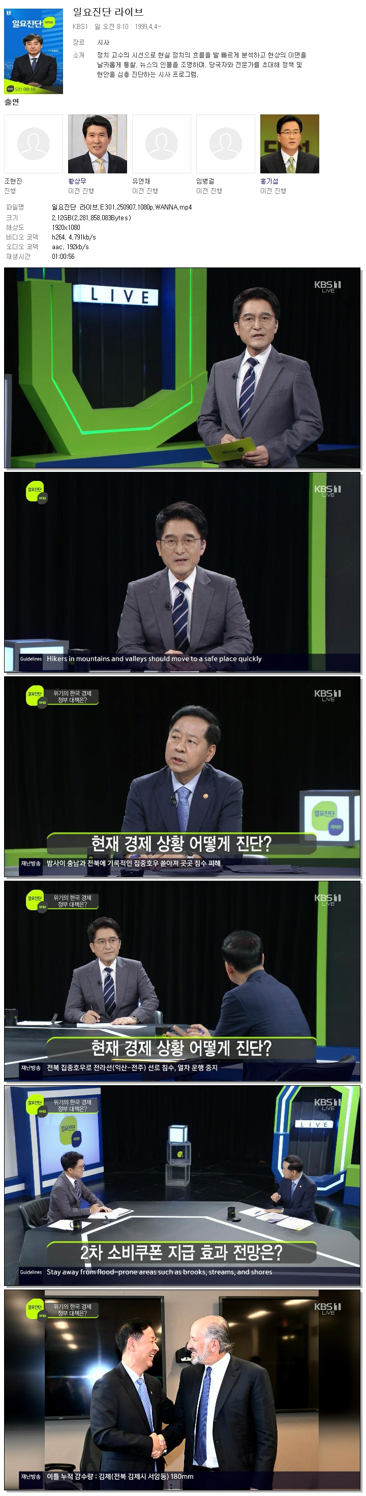 [KBS1] 일요진단 라이브.E301.250907.1080p.WANNA[김대홍]