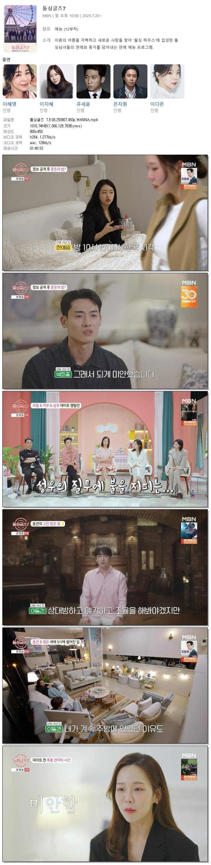 [MBN] 돌싱글즈 7.E08.250907.450p.WANNA[이혜영, 이지혜].mp4