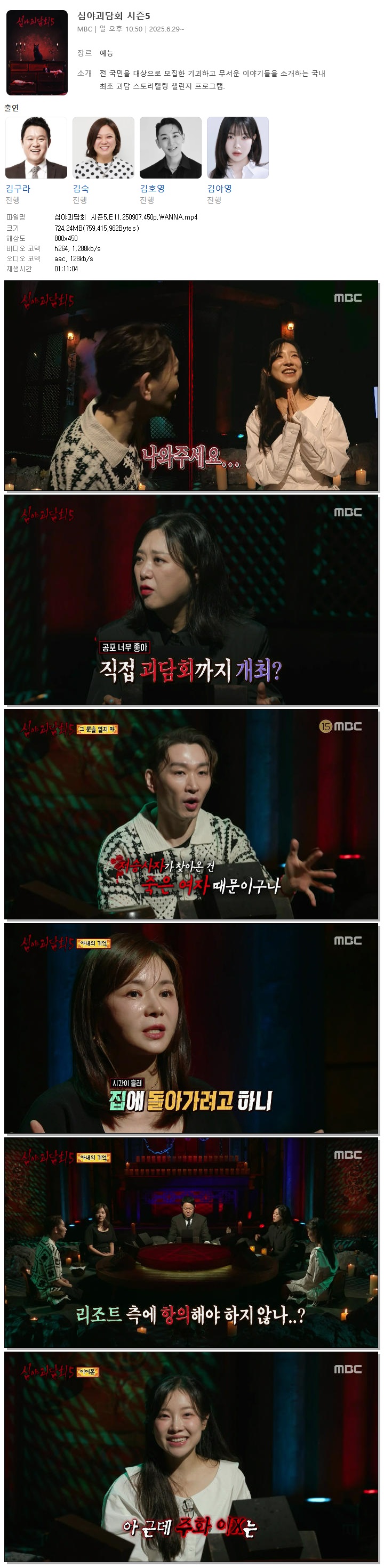[MBC] 심야괴담회 시즌5.E11.250907.450p.WANNA[장서희]