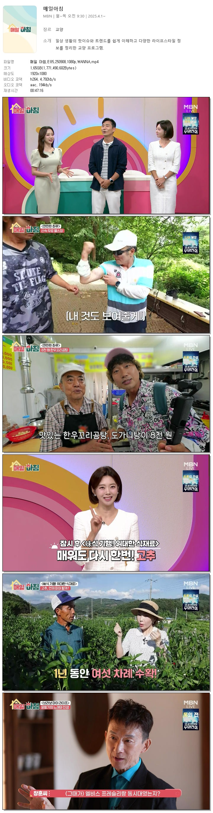 [MBN] 매일 아침.E85.250908.1080p.WANNA[한혜원, 이정수]
