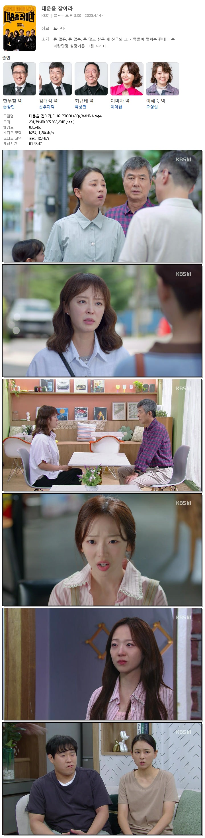 [KBS1] 대운을 잡아라.E102.250908.450p.WANNA[손창민, 이아현].mp4