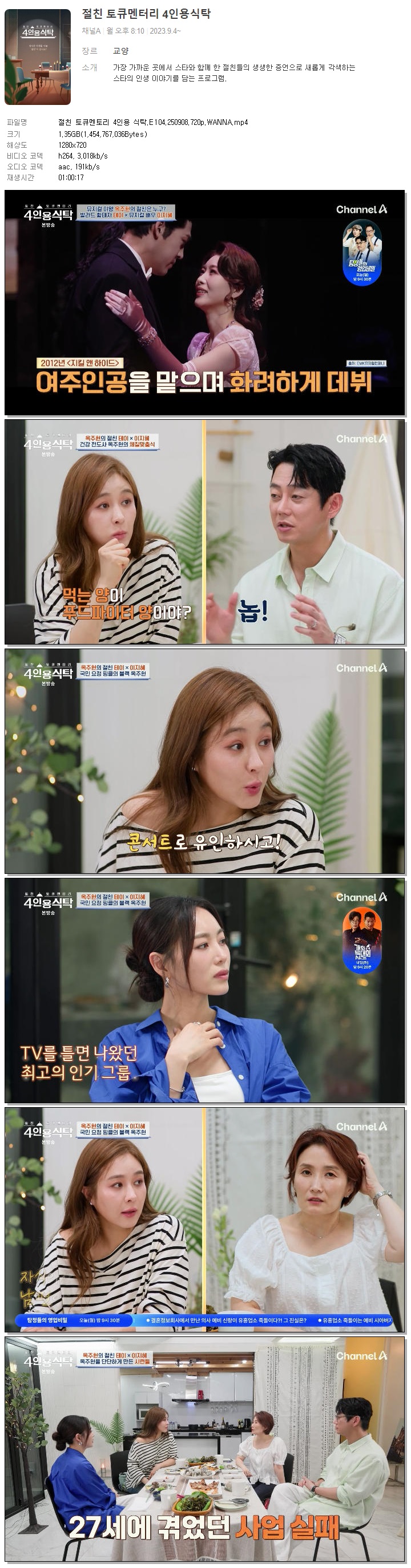[채널A] 절친 토큐멘토리 4인용 식탁.E104.250908.720p.WANNA[옥주현, 테이].mp4
