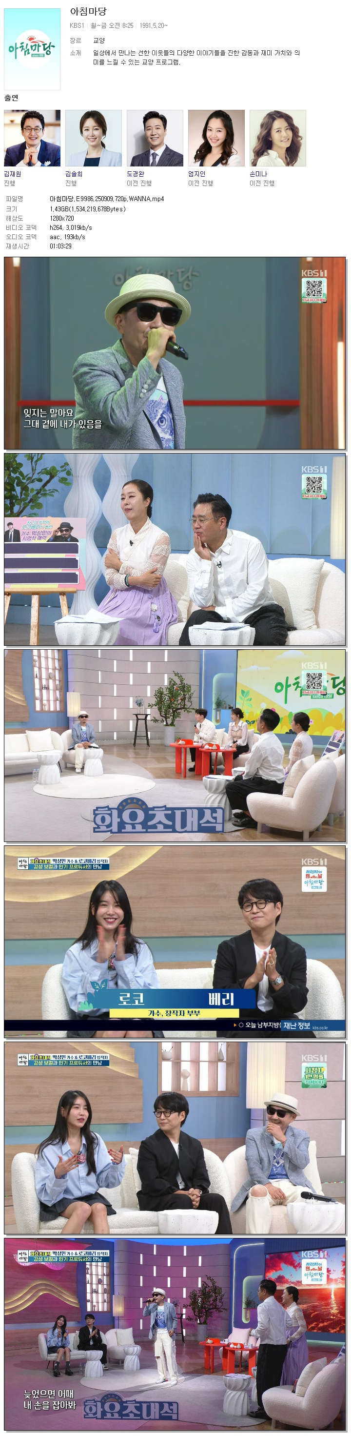 [KBS1] 아침마당.E9986.250909.720p.WANNA[김재원, 엄지인].mp4