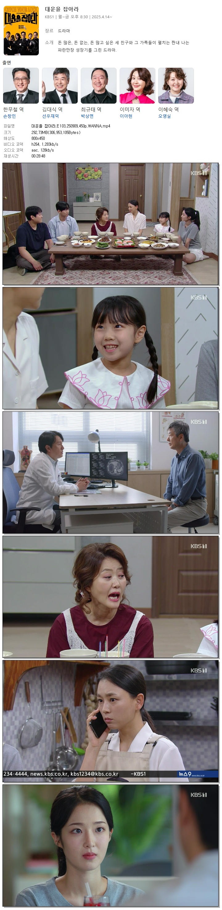 [KBS1] 대운을 잡아라.E103.250909.450p.WANNA[손창민, 이아현].mp4