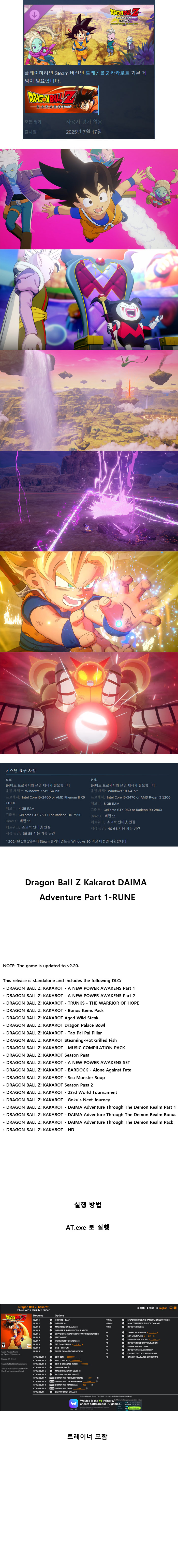 [무설치] 드래곤볼 Z 카카롯트 다이마 어드벤쳐 파트1트레이너 한글