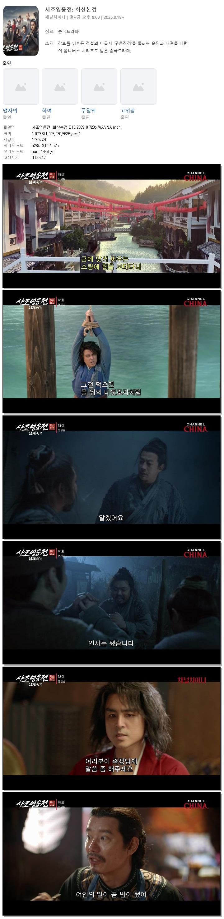 [채널차이나] 사조영웅전 화산논검.E18.250910.720p.WANNA[맹자의, 하여]