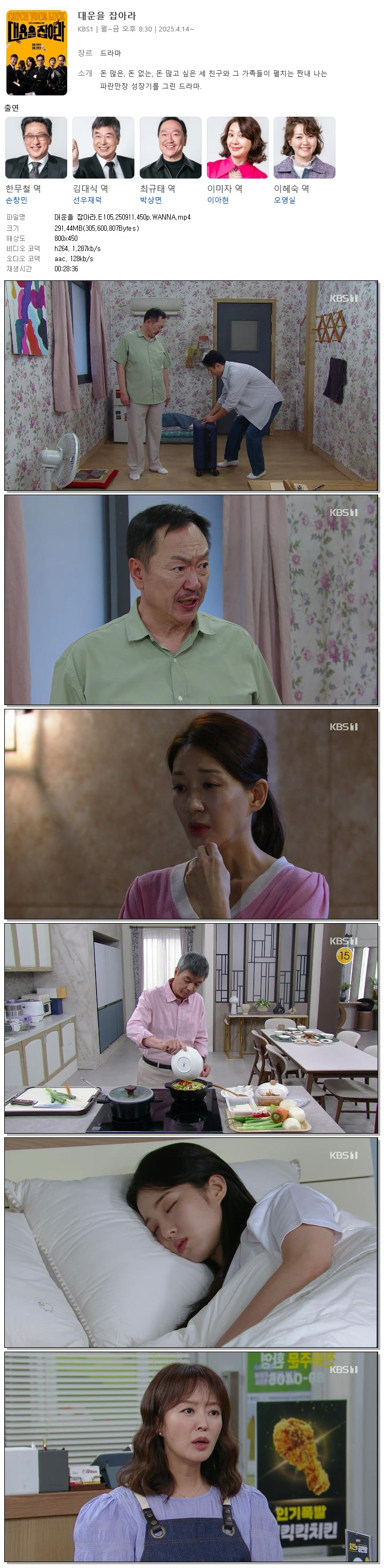 [KBS1] 대운을 잡아라.E105.250911.450p.WANNA[손창민, 이아현].mp4