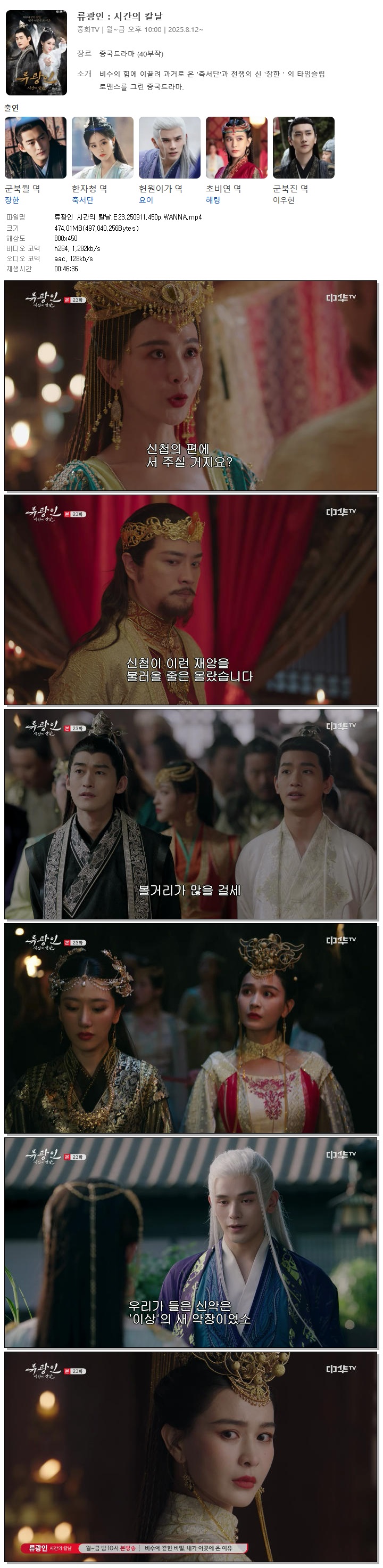 [중화TV] 류광인 시간의 칼날.E23.250911.450p.WANNA[군북월, 한자청].mp4