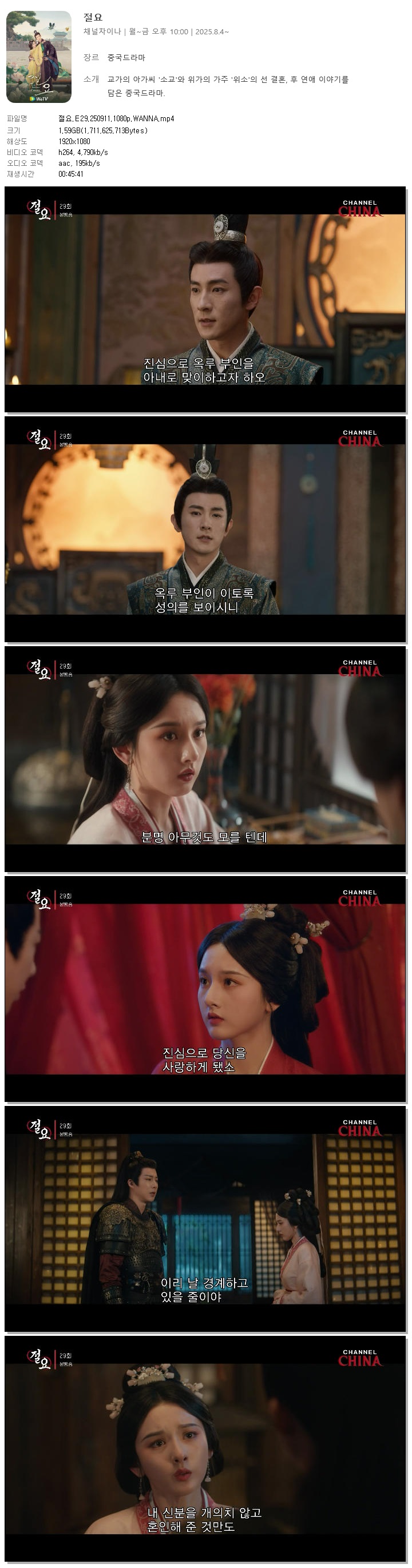 [채널차이나] 절요.E29.250911.1080p.WANNA[송조아, 류우녕]