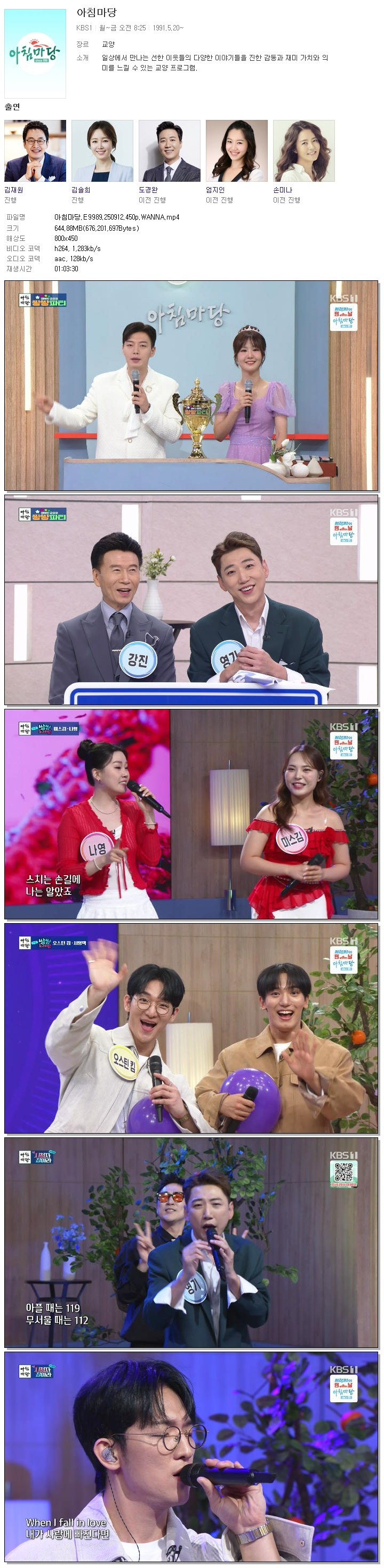 [KBS1] 아침마당.E9989.250912.450p.WANNA[엄지인, 박철규]