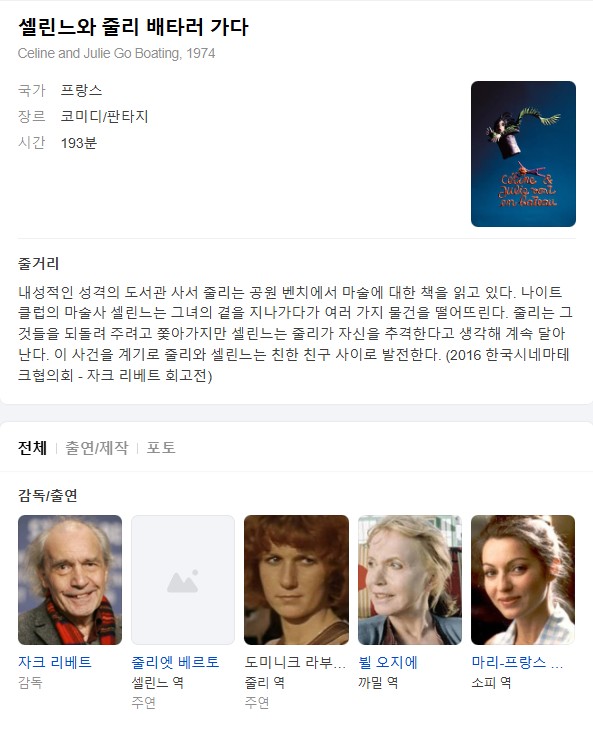 [영화-SF] 셀린느와 줄리 배타러 가다.1974.1080p.한글자막