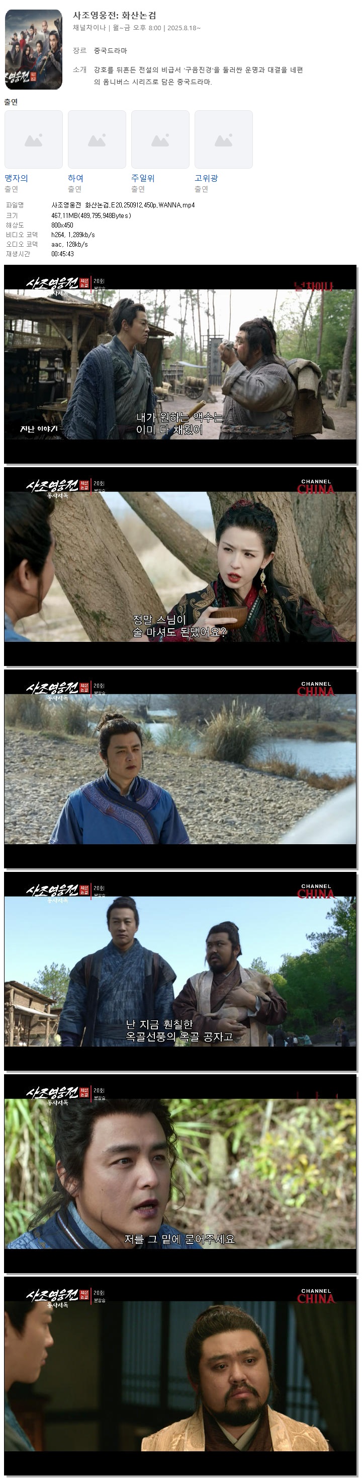 [채널차이나] 사조영웅전 화산논검.E20.250912.450p.WANNA[맹자의, 하여]