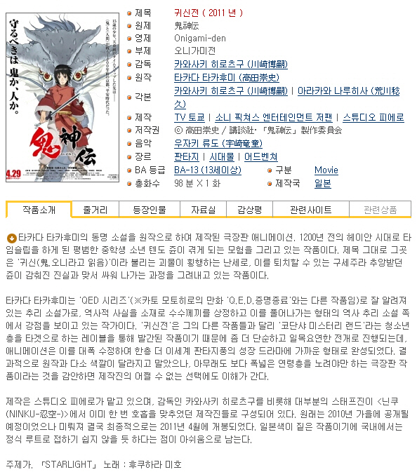 [인생] 귀신전 [Onigamiden] 극장판 -모험 시대 판타지 액션-