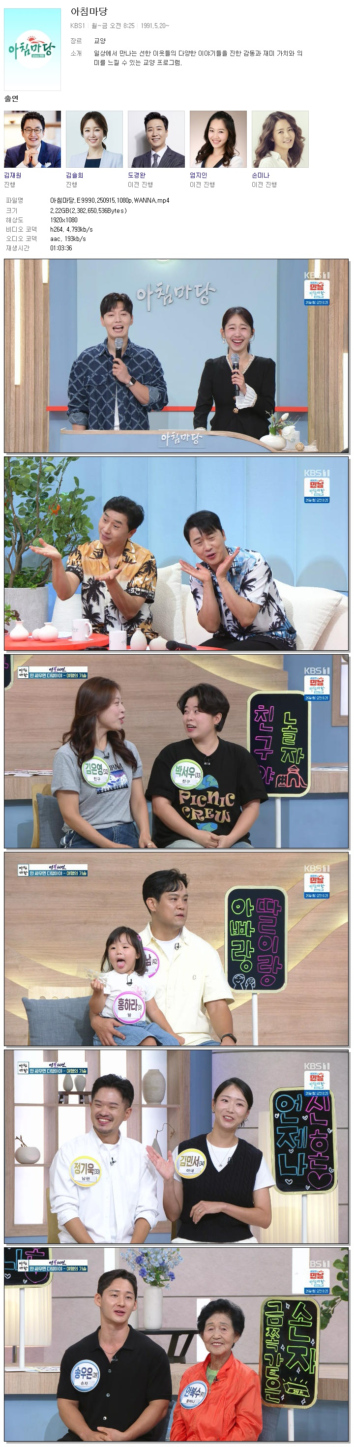 [KBS1] 아침마당.E9990.250915.1080p.WANNA[엄지인, 박철규]