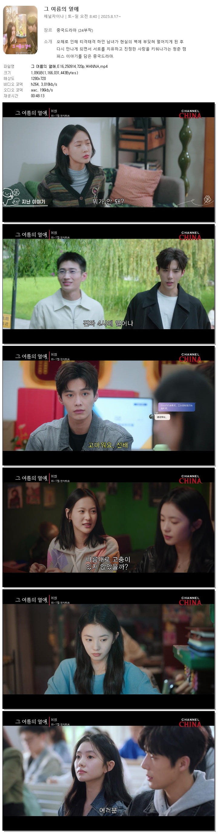 [채널차이나] 그 여름의 열애.E16.250914.720p.WANNA[류하오춘, 왕안우]