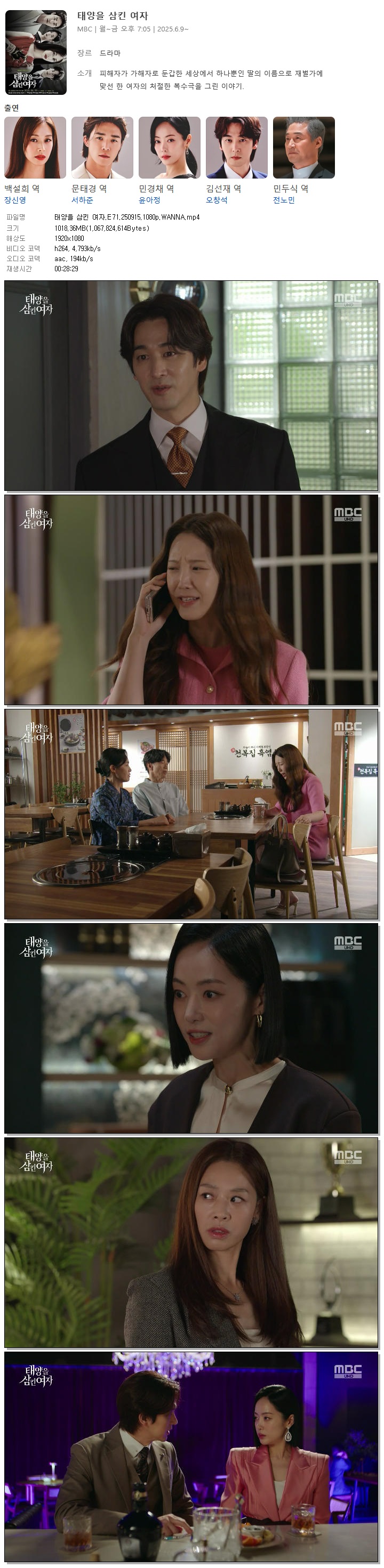 [MBC] 태양을 삼킨 여자.E71.250915.1080p.WANNA[장신영, 서하준]