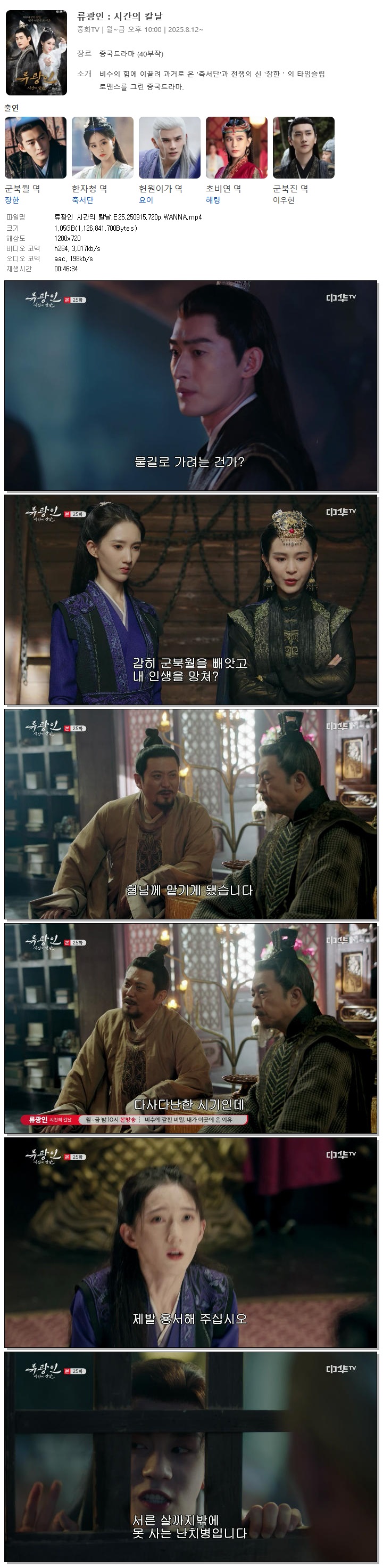 [중화TV] 류광인 시간의 칼날.E25.250915.720p.WANNA[군북월, 한자청].mp4