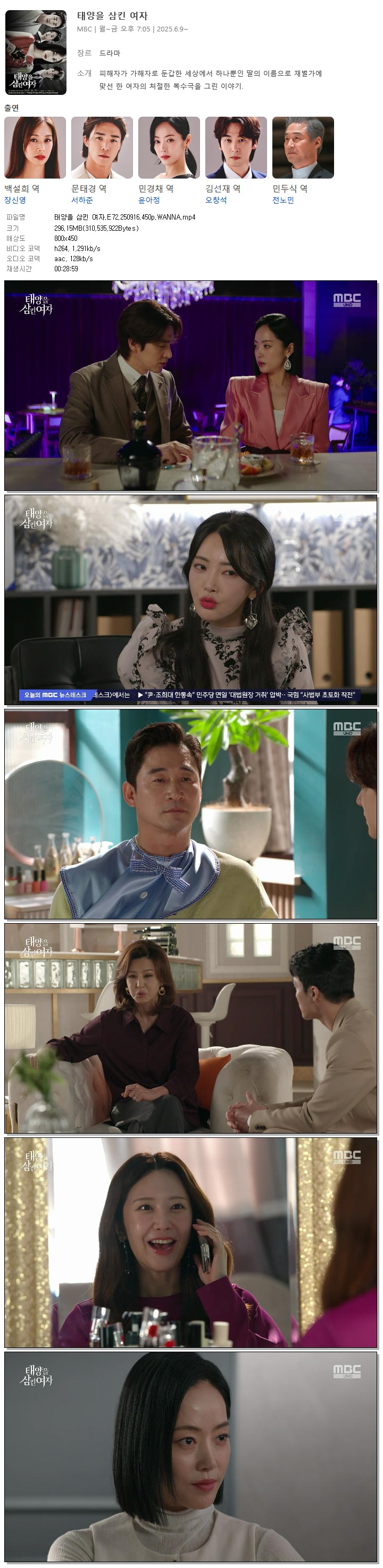 [MBC] 태양을 삼킨 여자.E72.250916.450p.WANNA[장신영, 서하준]