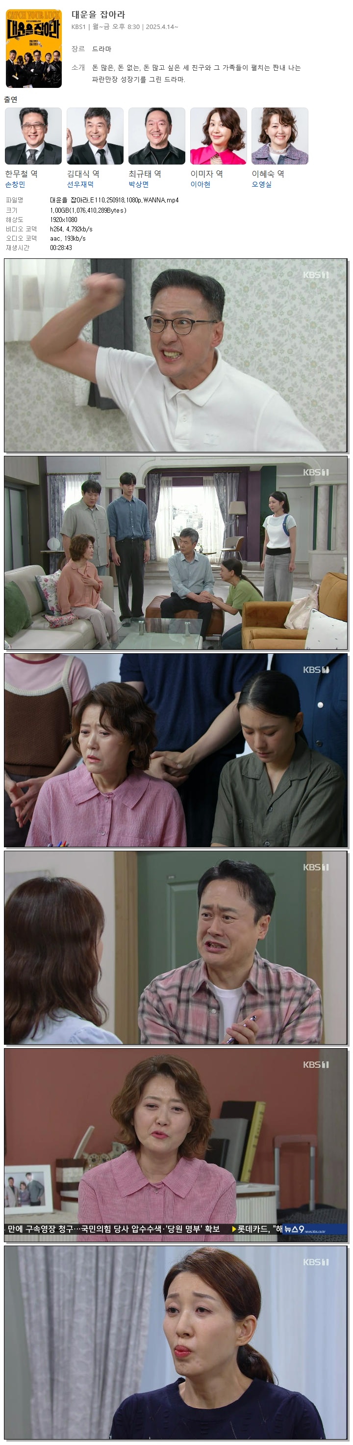 [KBS1] 대운을 잡아라.E110.250918.1080p.WANNA[손창민, 이아현].mp4