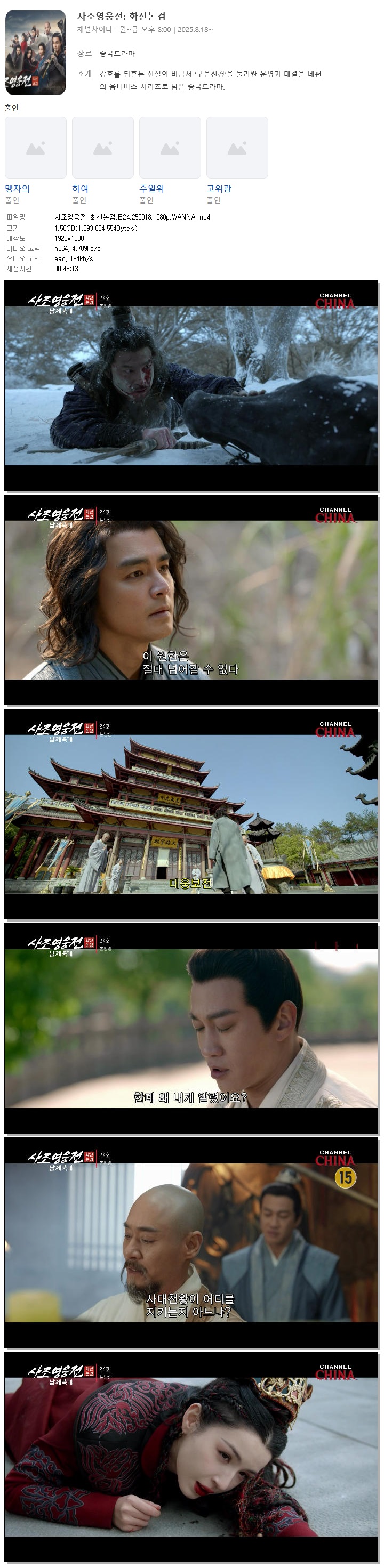 [채널차이나] 사조영웅전 화산논검.E24.250918.1080p.WANNA[맹자의, 하여]