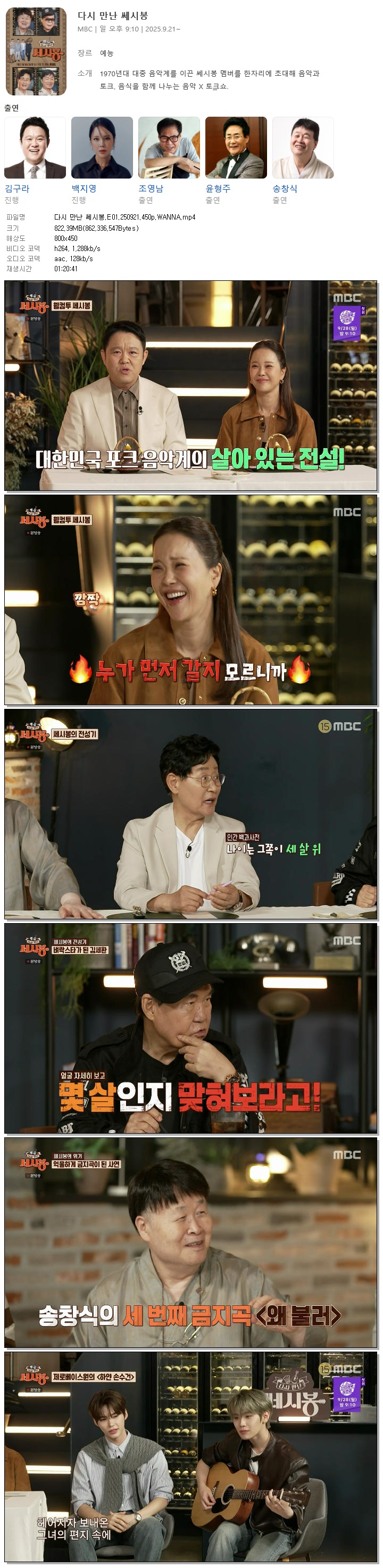 [MBC] 다시 만난 쎄시봉.E01.250921.450p.WANNA[조영남, 송창식]
