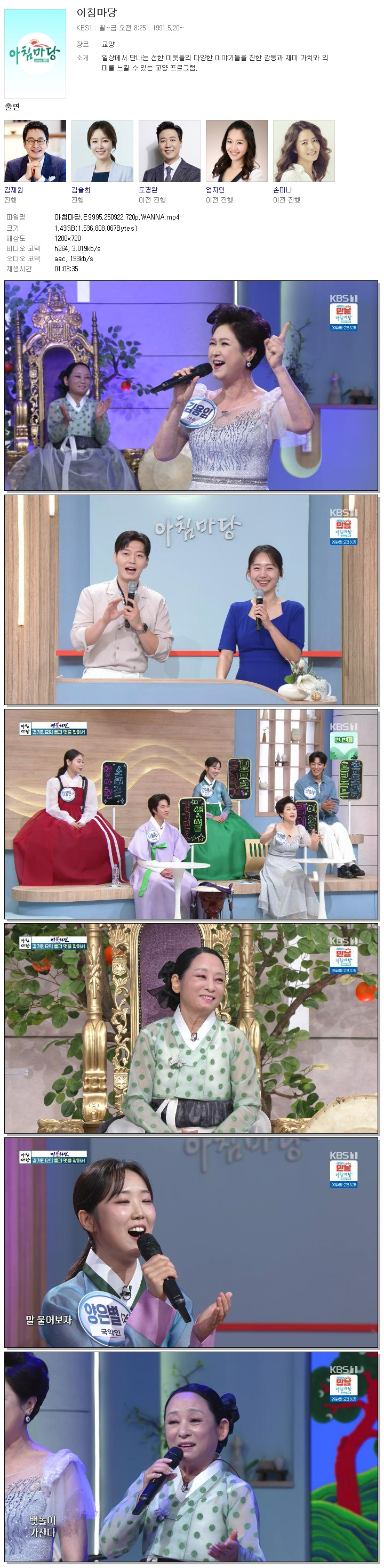 [KBS1] 아침마당.E9995.250922.720p.WANNA[엄지인, 박철규].mp4