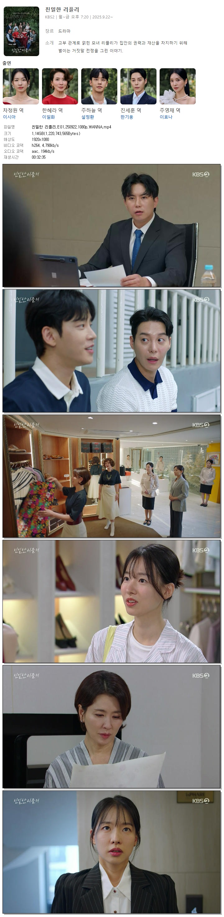 [KBS2] 친밀한 리플리.E01.250922.1080p.WANNA[이시아, 이일화].mp4