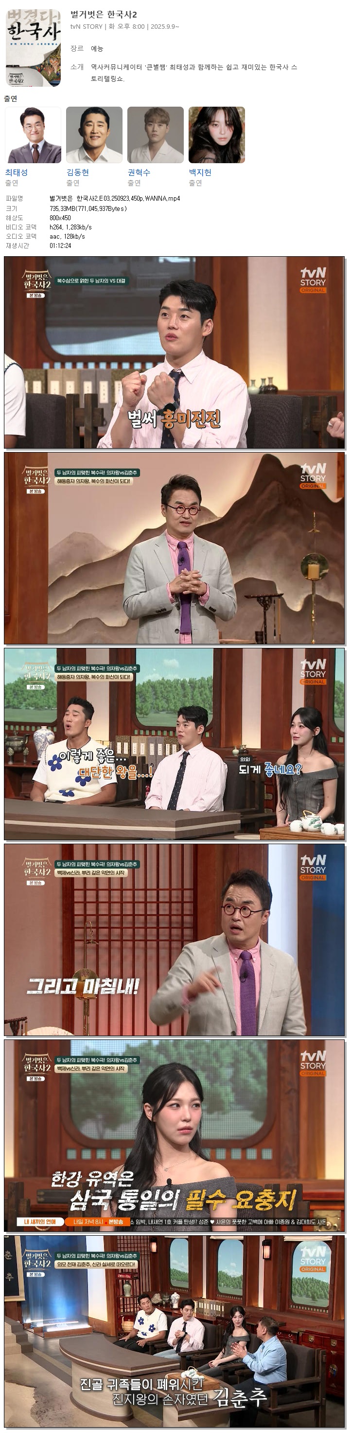 [TVN STORY] 벌거벗은 한국사2.E03.250923.450p.WANNA[권혁수, 백지헌]