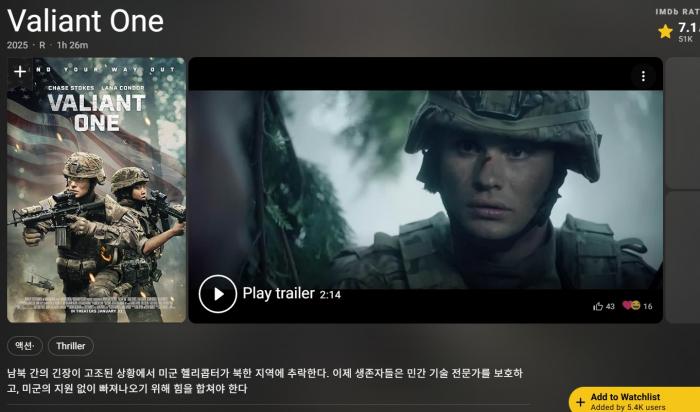 9월 개봉작 한국전쟁 비무장지대 탈출 [ 북한의 포위망 ] 1080P 5.1 한글자막