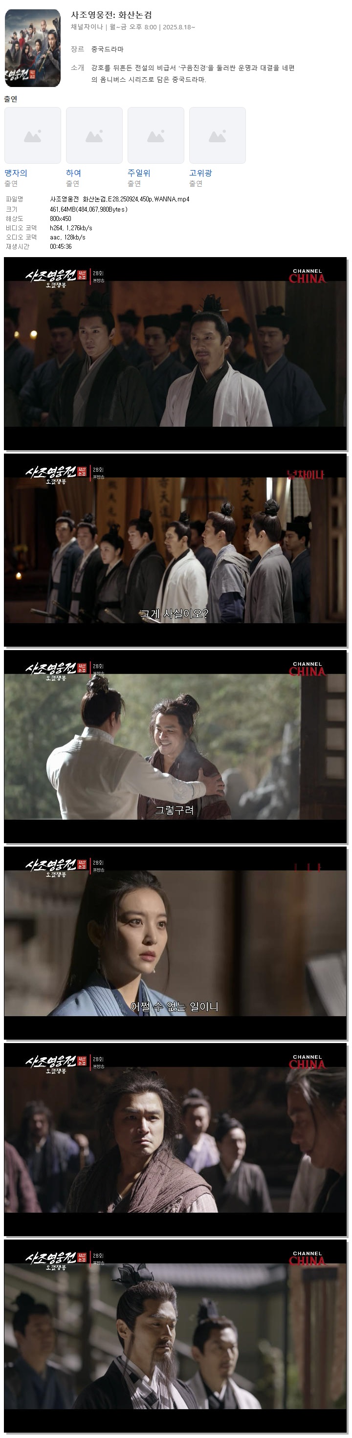 [채널차이나] 사조영웅전 화산논검.E28.250924.450p.WANNA[맹자의, 하여].mp4