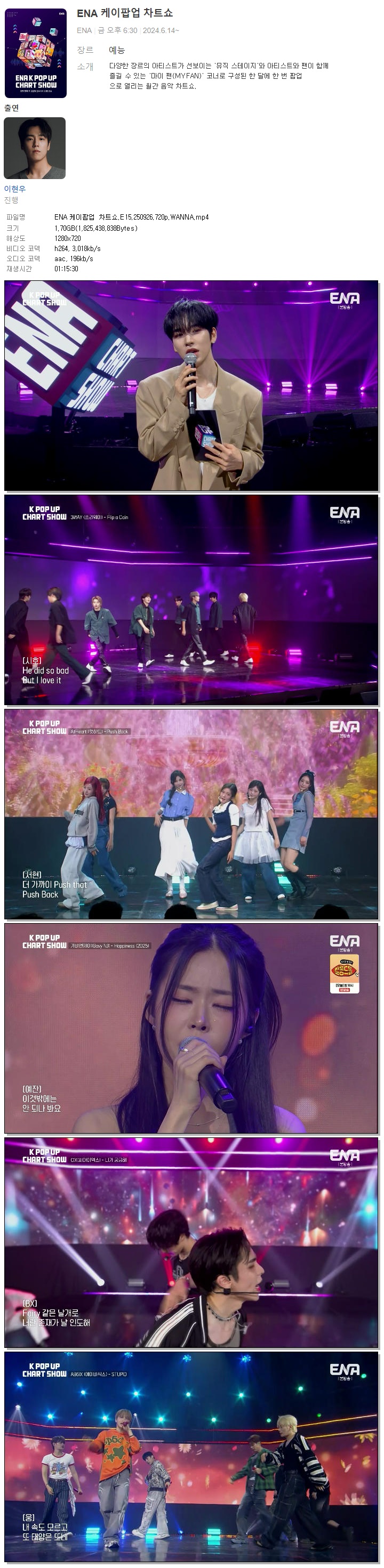 [ENA] ENA 케이팝업 차트쇼.E15.250926.720p.WANNA[가비엔제이, CIX]