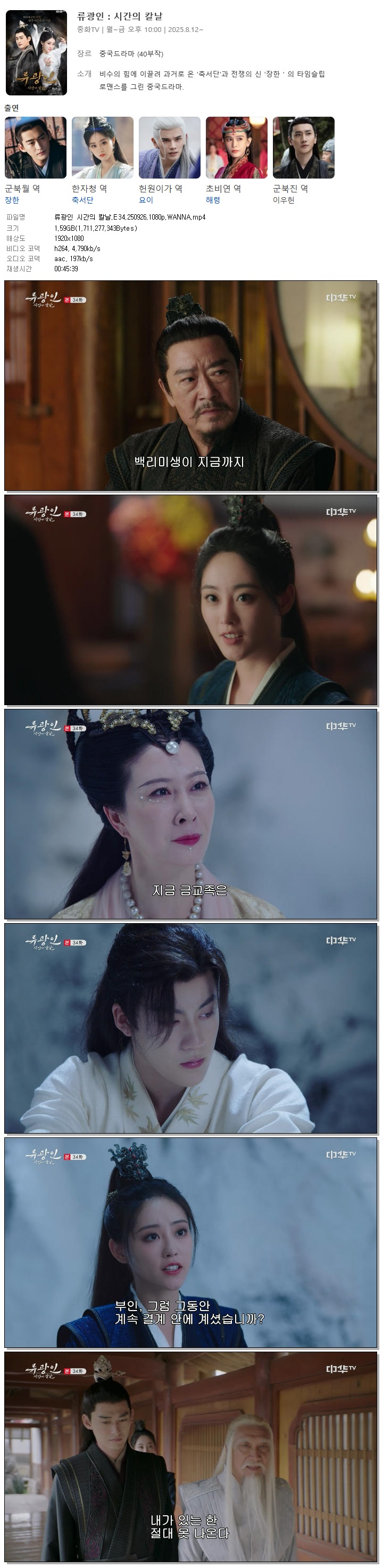 [중화TV] 류광인 시간의 칼날.E34.250926.1080p.WANNA[군북월, 한자청]