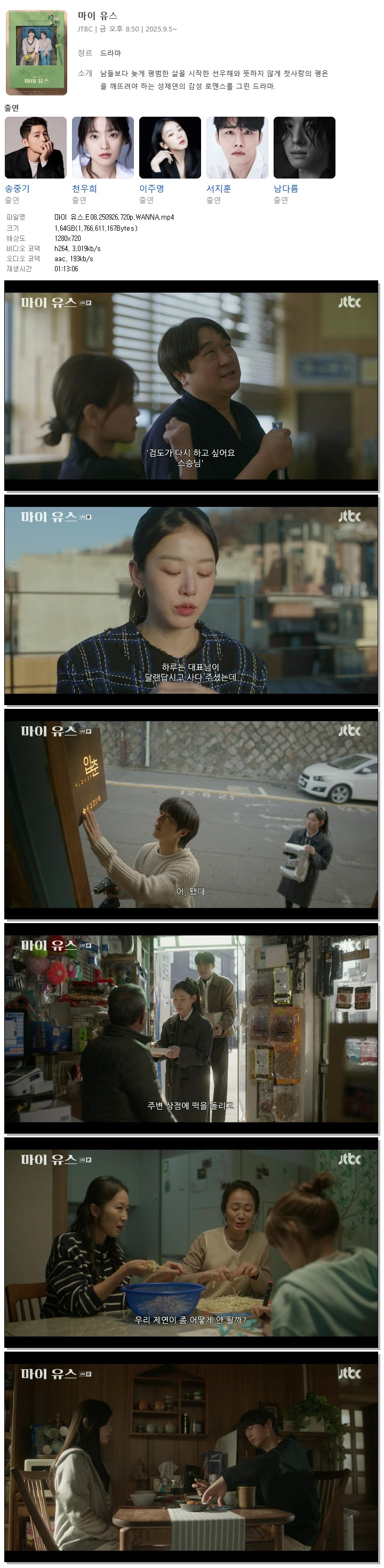 [JTBC] 마이 유스.E08.250926.720p.WANNA[송중기, 천우희].mp4