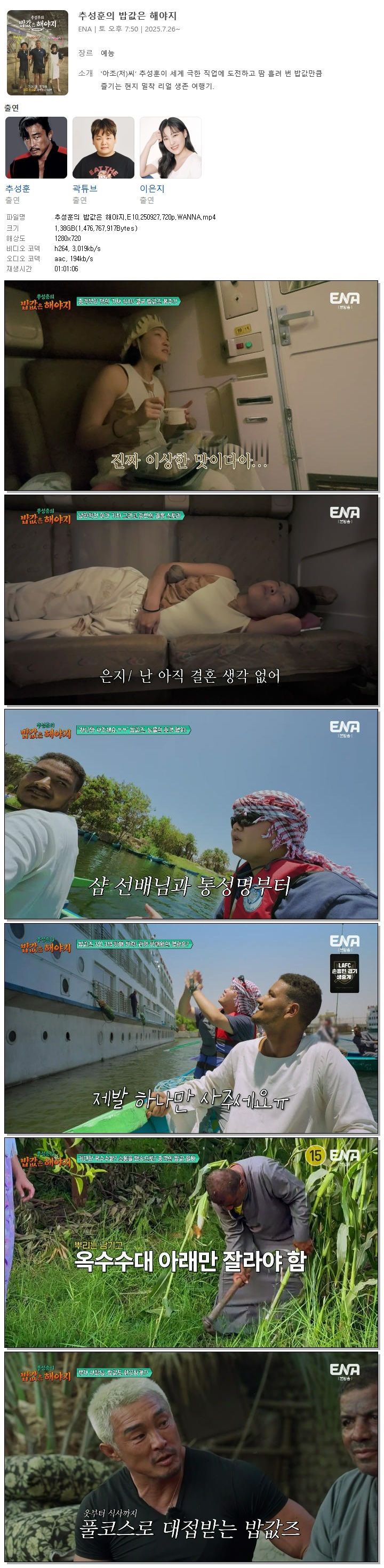 [ENA] 추성훈의 밥값은 해야지.E10.250927.720p.WANNA[추성훈, 이은지]
