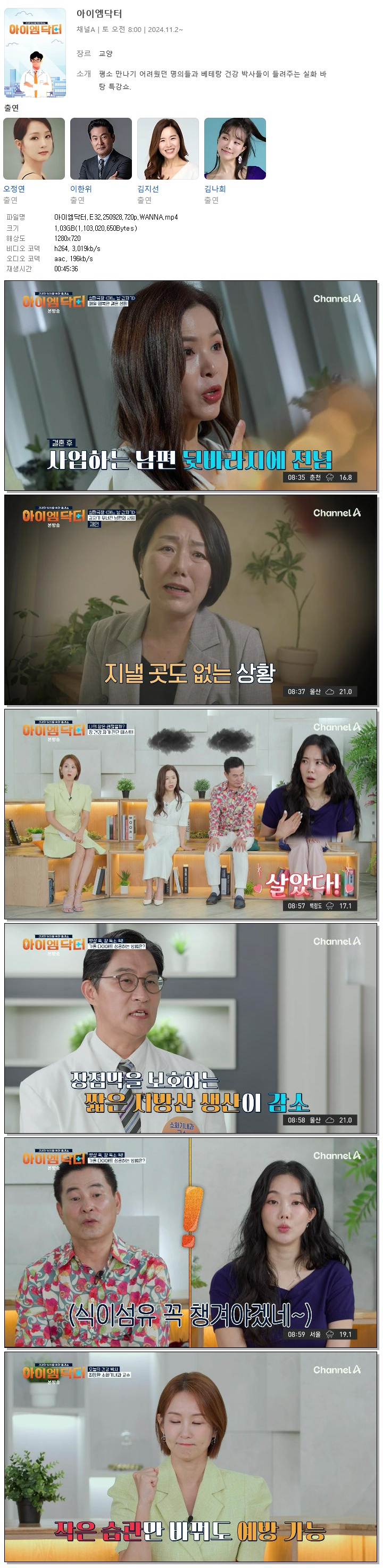[채널A] 아이엠닥터.E32.250928.720p.WANNA[오정연, 이한위]
