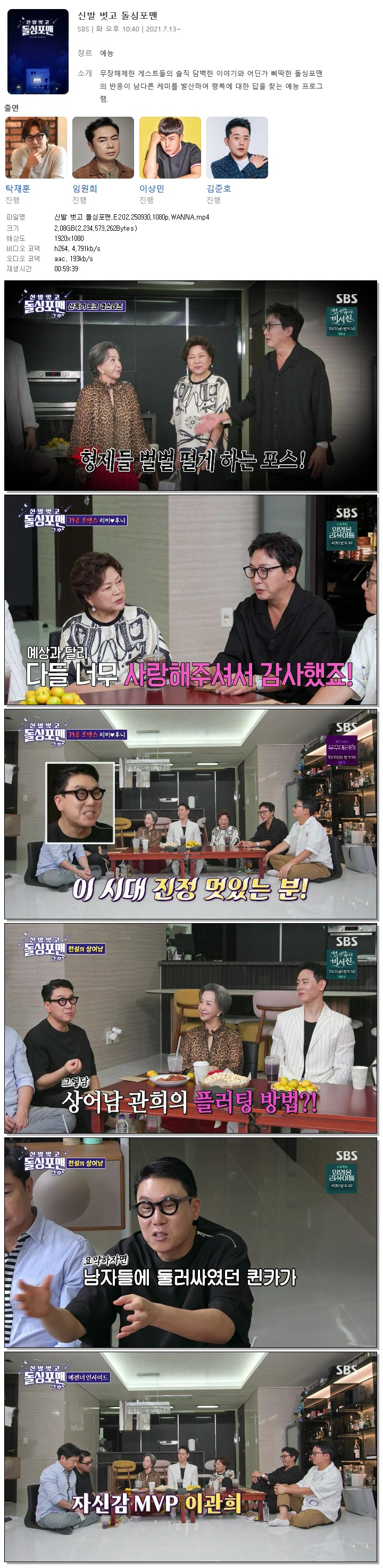 [SBS] 신발 벗고 돌싱포맨.E202.250930.1080p.WANNA[김용림, 이관희].mp4