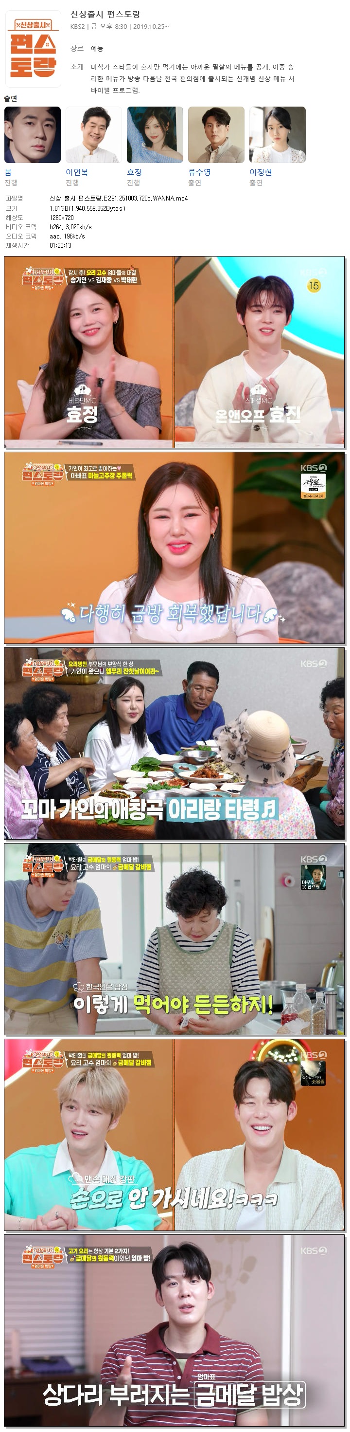 [KBS2] 신상 출시 편스토랑.E291.251003.720p.WANNA[박태환, 송가인].mp4