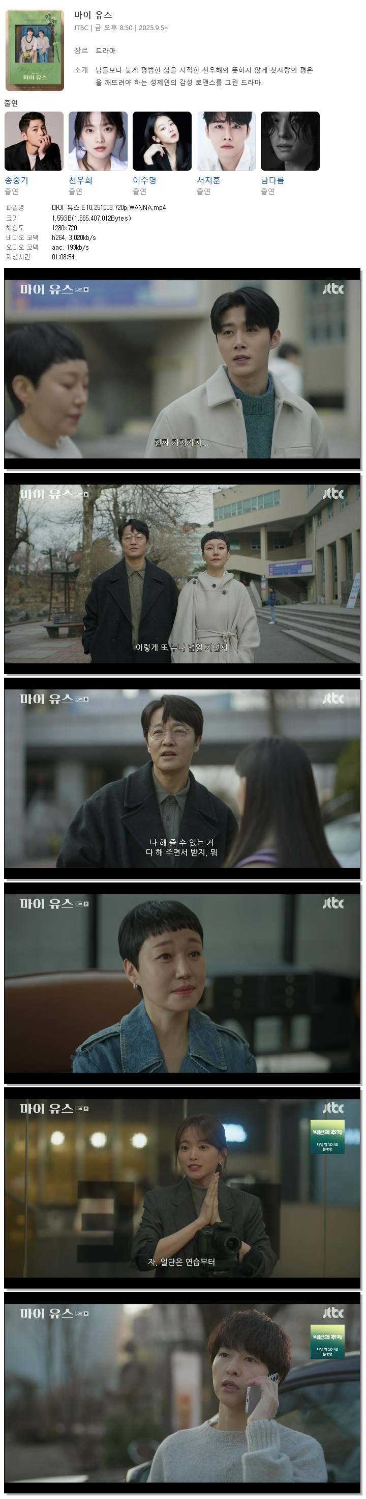 [JTBC] 마이 유스.E10.251003.720p.WANNA[송중기, 천우희].mp4
