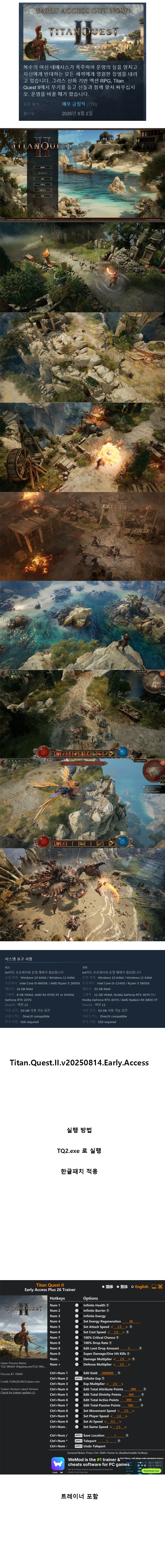 [무설치] 타이탄퀘스트2 V250814 한패V5+동영상+트레이너 한글