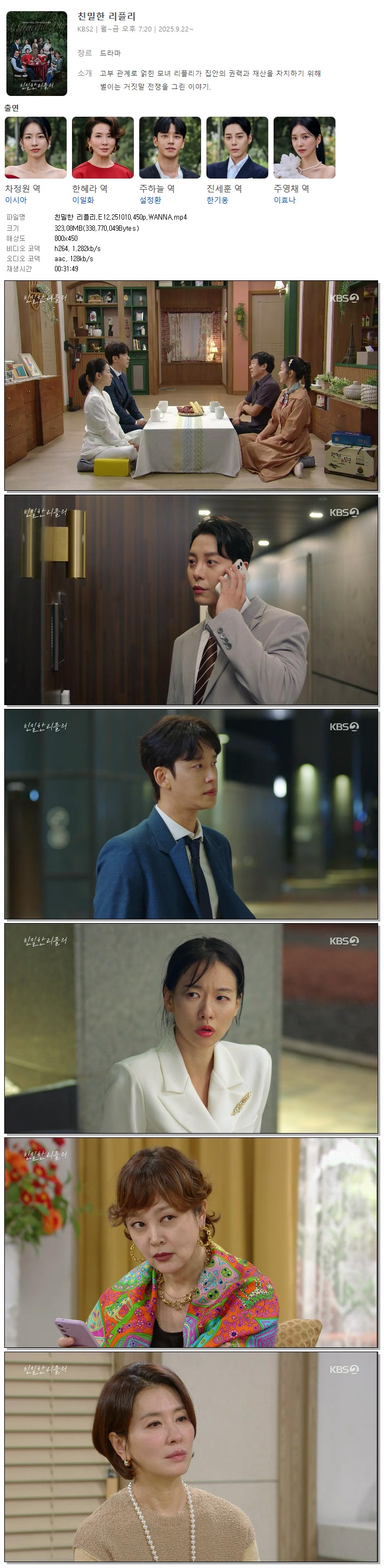 [KBS2] 친밀한 리플리.E12.251010.450p.WANNA[이시아, 이일화].mp4