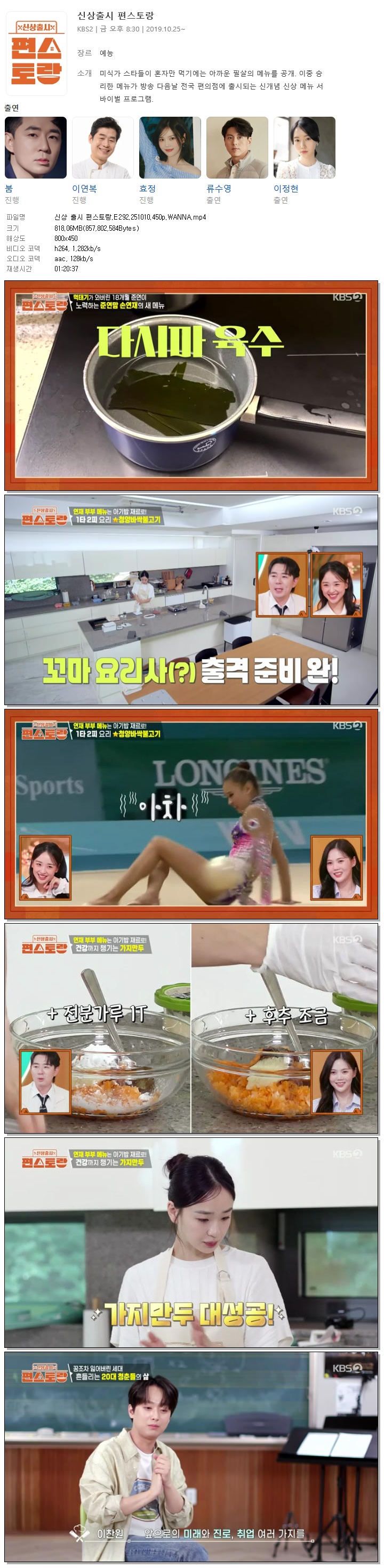 [KBS2] 신상 출시 편스토랑.E292.251010.450p.WANNA[손연재, 이찬원]