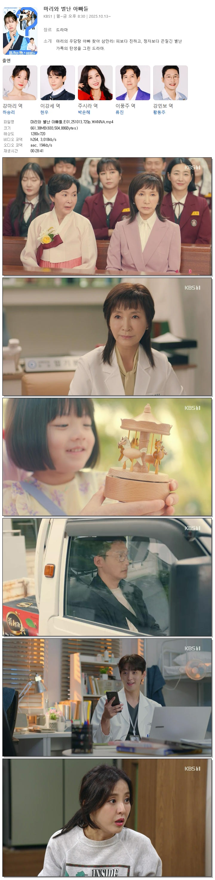 [KBS1] 마리와 별난 아빠들.E01.251013.720p.WANNA[하승리, 현우].mp4
