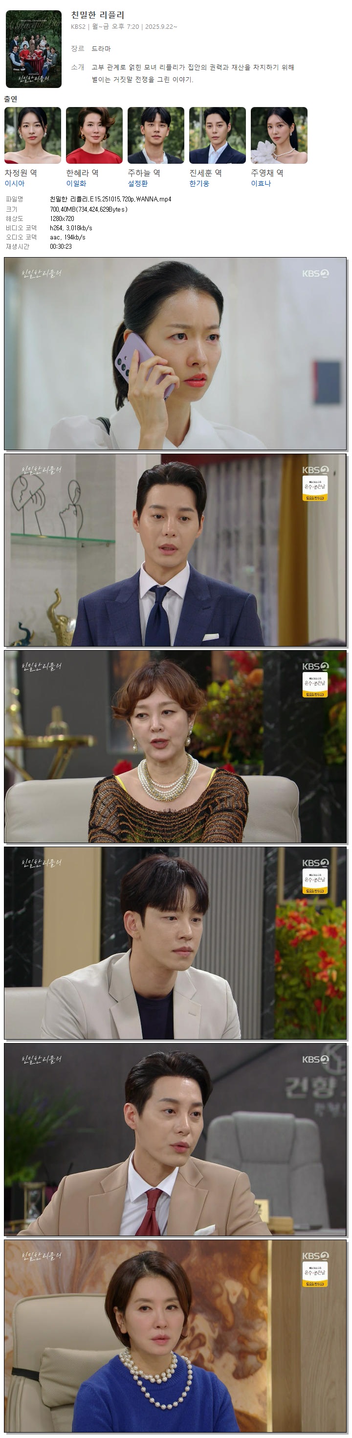 [KBS2] 친밀한 리플리.E15.251015.720p.WANNA[이시아, 이일화].mp4