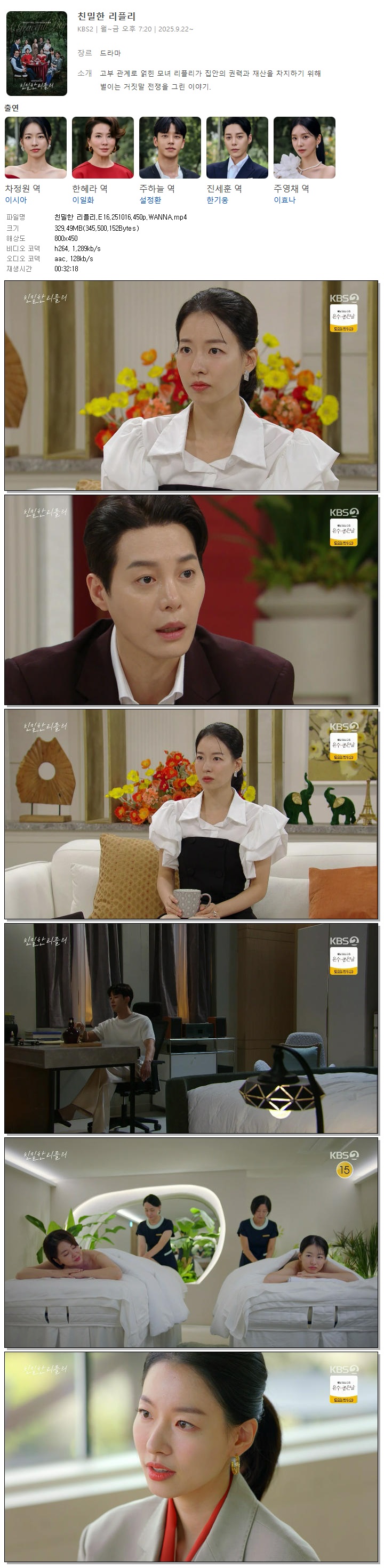 [KBS2] 친밀한 리플리.E16.251016.450p.WANNA[이시아, 이일화].mp4