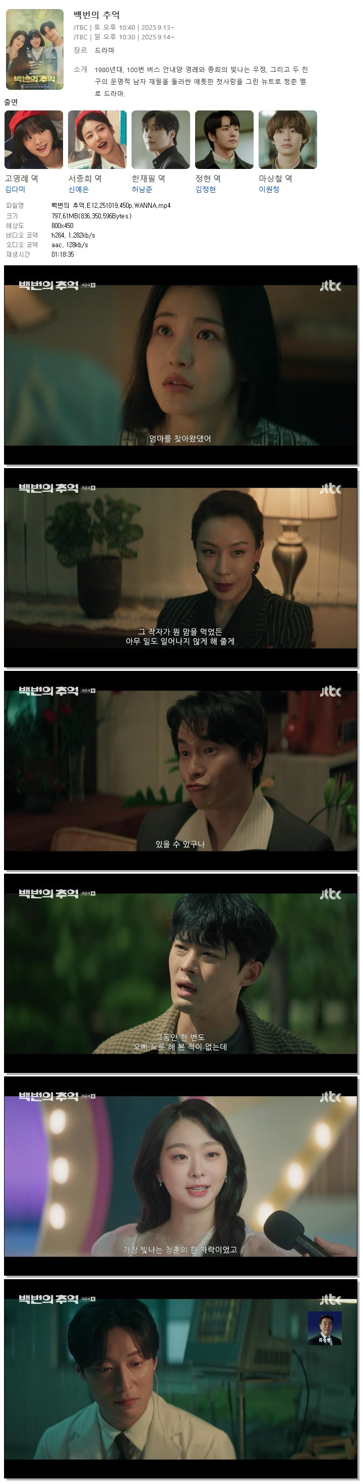 [JTBC] 백번의 추억.E12.251019.450p.WANNA[김다미, 신예은].mp4